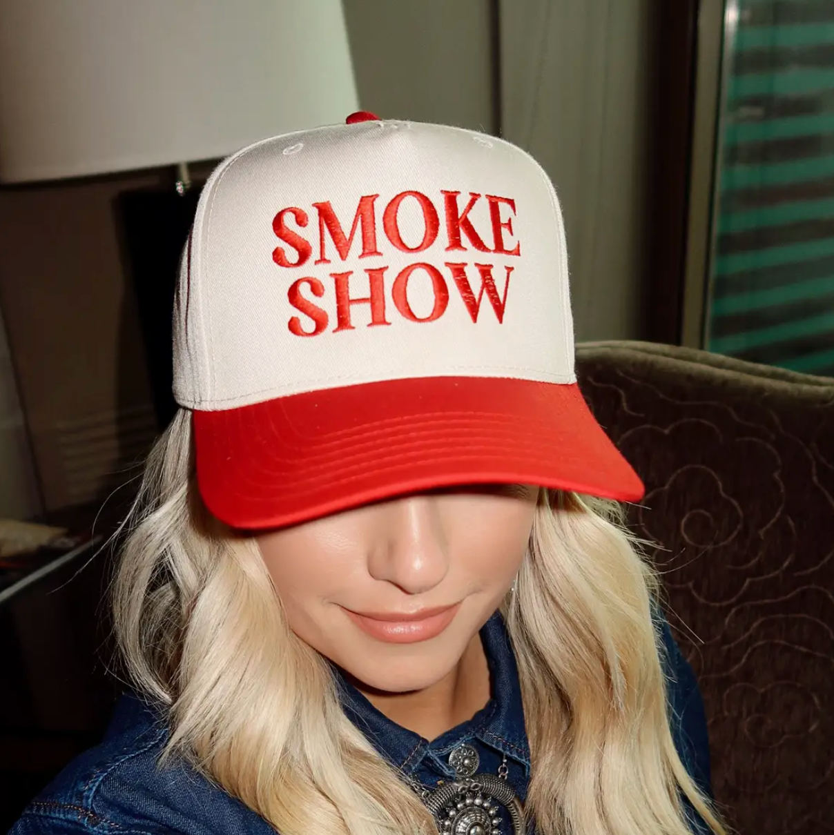 This sleek and stylish accessory is designed to turn heads wherever you go. Crafted with premium materials and featuring a structured crown, this cap offers both durability and a sharp, modern look. With its eye-catching bold red smoke show embroidered design and comfortable fit, the "Smoke Show" cap is the perfect choice for adding a touch of boldness and flair to any outfit.