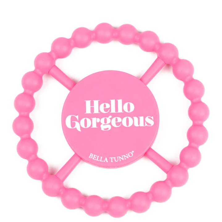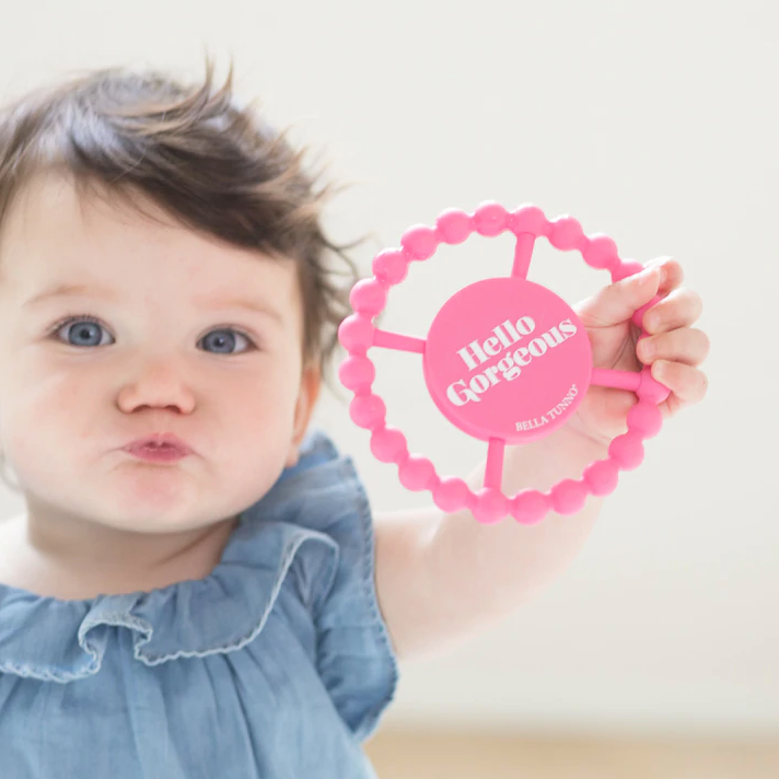 The rounded shape of the Happy Teether provides easy grip from any angle. The silicone material and beaded design give the right amount of resistance to sore gums and newly developed teeth.