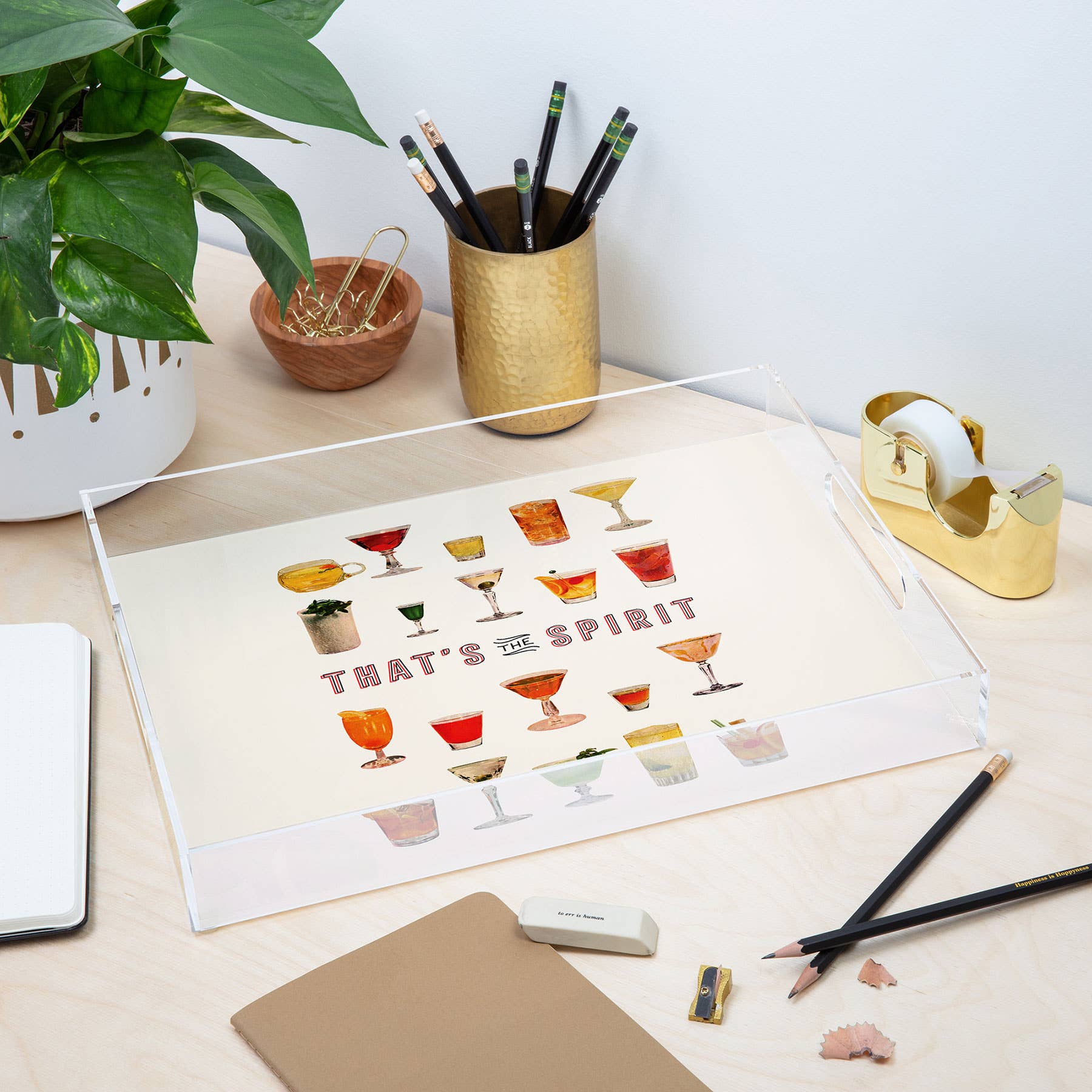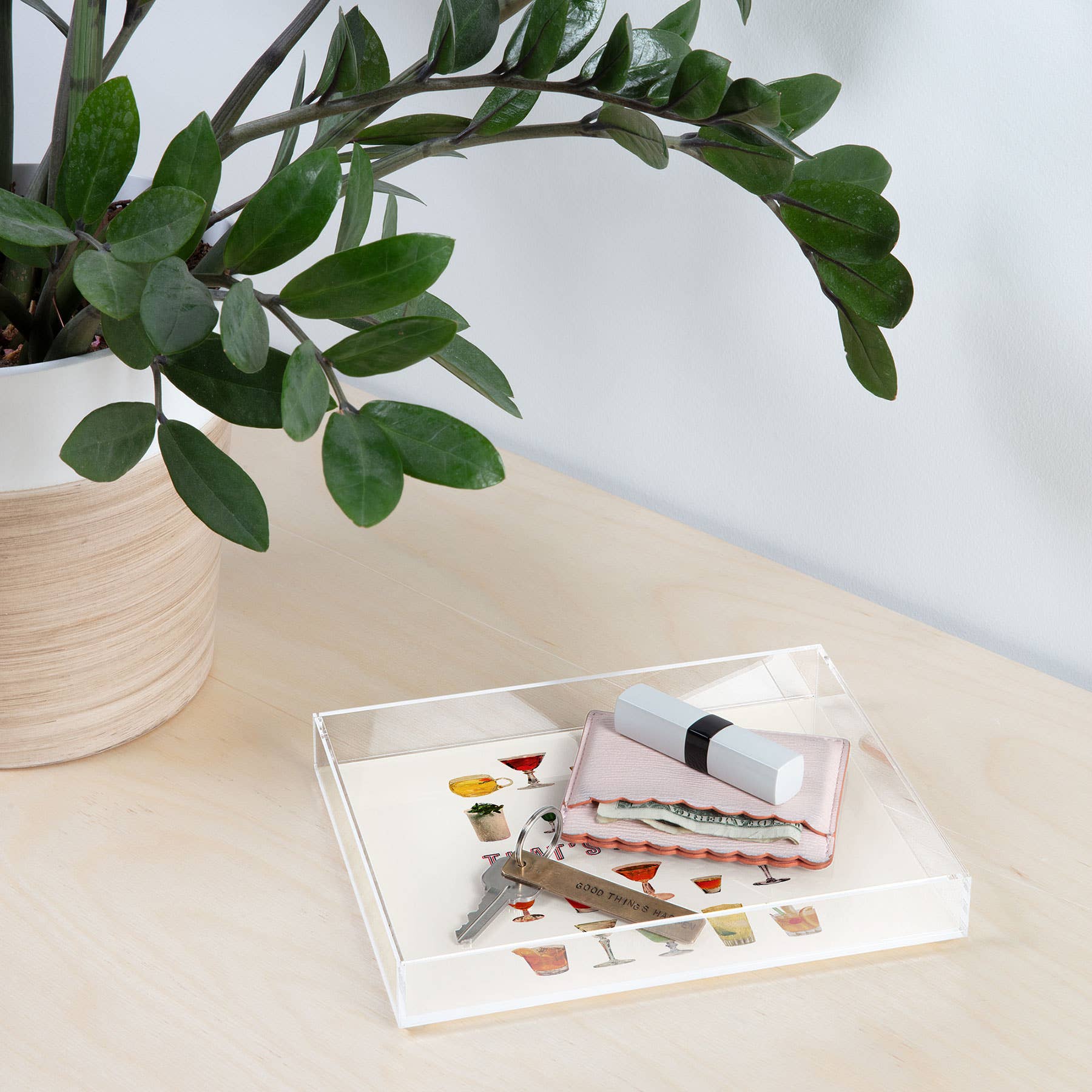 Tray chic. The Deny Designs acrylic trays come in a small and medium-size to accommodate all your countertop organizational needs. Featuring designs from our curated selection on the bottom panel, the acrylic trays can adapt to whatever decor style you love and the see-through side panels give them a modern flair. The medium-sized tray even comes with handles, allowing you to take it around the house for nail supplies or, dare we say, breakfast in bed! And the best part? Every purchase pays the artist who designed it—supporting creativity worldwide.