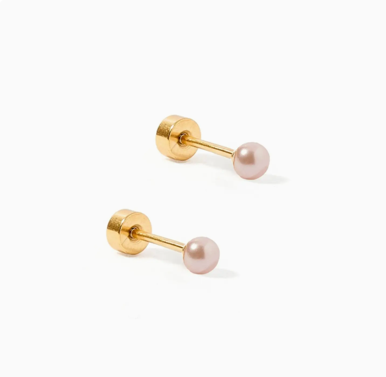 Screwback Stud Earrings - Payton Pearl Pink 3mm