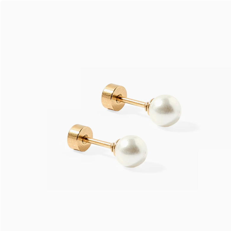 With a 5mm white pearl, the Payton Pearl White Screwback Stud Earrings offer a timeless and sophisticated look. These earrings pair perfectly with our huggie earrings, adding a touch of refinement and versatility to your collection. Featuring a twist on and flat back design, they provide a secure and comfortable fit, making them ideal for all-day wear. hypoallergenic and lightweight, these studs are perfect for sensitive ears.