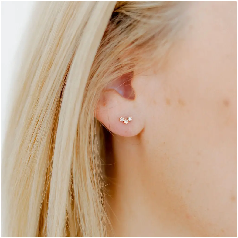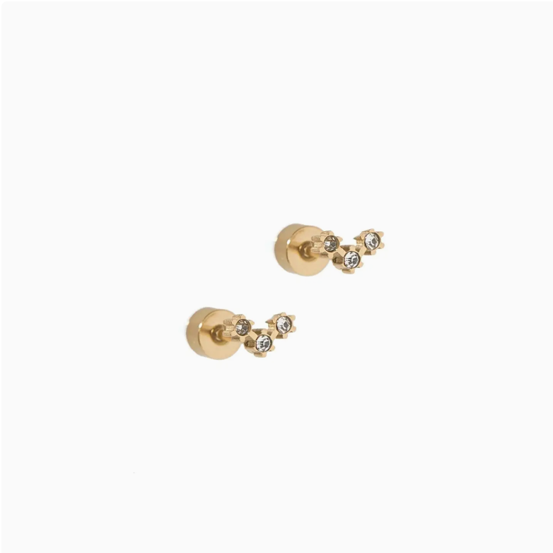 The Sienna Screwback Stud Earrings are inspired by the beauty of the night sky, designed to resemble a perfect star constellation on your ear. Featuring a 6mm stud with three CZ stones arranged in a gold star arch shape, these earrings add a celestial touch to your style. Made from 100% surgical-grade stainless steel, they are nickel- and copper-free, making them safe for sensitive ears. With a secure screwback design, they offer a snug and comfortable fit for all-day wear.