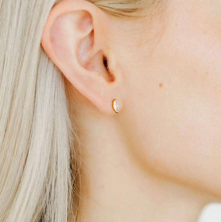 The Maeve Screwback Stud Earrings feature a stunning 8mm CZ Marquis stone, set with elegant gold prongs for a touch of luxury. Designed for secure and comfortable wear, these earrings are perfect for adding a sophisticated flair to any outfit. Made from 100% surgical-grade stainless steel, they are nickel- and copper-free, ensuring safety for sensitive ears. With a durable screwback design, these earrings stay securely in place for all-day wear.